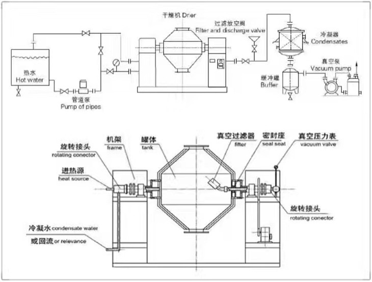 1. 在密閉的夾層中通入熱能源(如熱水、低壓、蒸汽或?qū)嵊停瑹崃拷?jīng)內(nèi)殼傳給被干燥物料。