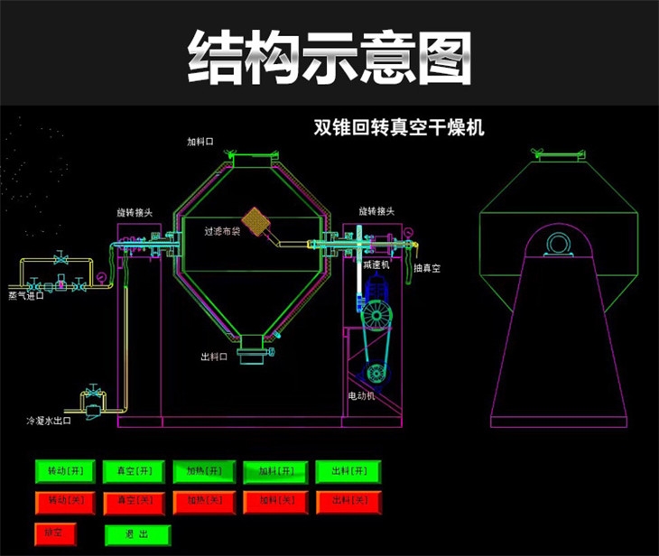 SZG雙錐回轉(zhuǎn)真空干燥機是我廠在結(jié)合國內(nèi)同類產(chǎn)品技術(shù)所開發(fā)的真空干燥裝置,SZG雙錐回轉(zhuǎn)真空干燥機具備皮帶、鏈條兩級彈性聯(lián)結(jié)方式,因而設(shè)備運行平穩(wěn)。特別設(shè)計的工裝,充分體現(xiàn)了兩只支軸的良好同心,熱媒及真空系統(tǒng)均采用可靠的美國技術(shù)的旋轉(zhuǎn)接頭。在此基礎(chǔ)上,我們開發(fā)了SZG-A,它即可無線調(diào)速,又能進行恒溫控制。