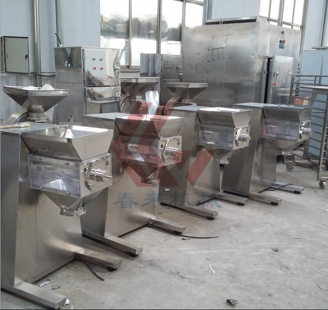 該機(jī)主要適用于醫(yī)藥、化工、食品等工業(yè)中制造各種規(guī)格的顆粒,烘干后供壓制各種成型制品,該機(jī)亦可用于粉碎凝結(jié)成塊狀的干料。本機(jī)是一種將潮濕粉末混合物,在旋轉(zhuǎn)筒的正反轉(zhuǎn)作用下,強(qiáng)制性通過篩網(wǎng)而制成的專用設(shè)備,C型為加重型適合粘度大的物料制成顆粒。
