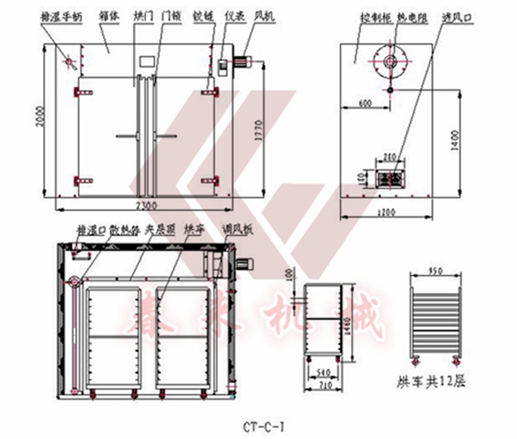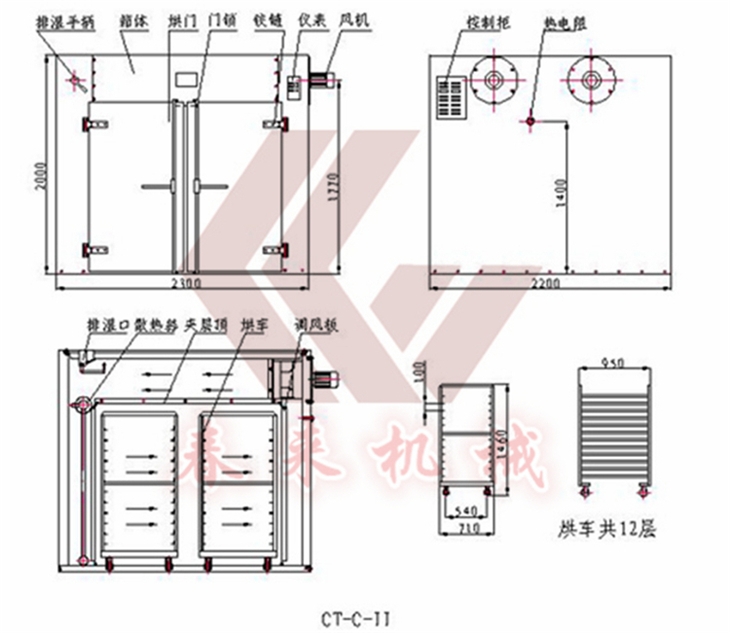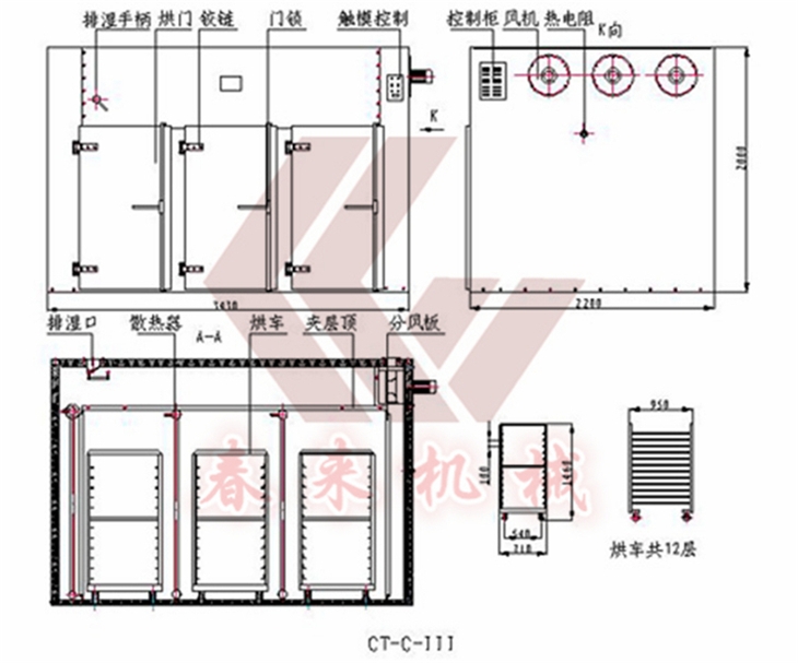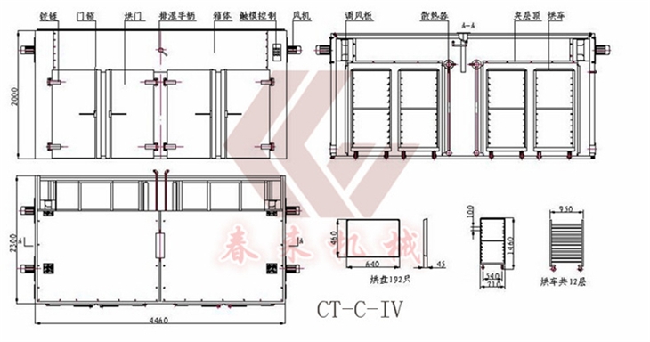 9.廠的烘車(chē),烘盤(pán)尺寸統(tǒng)一,可以互換使用。