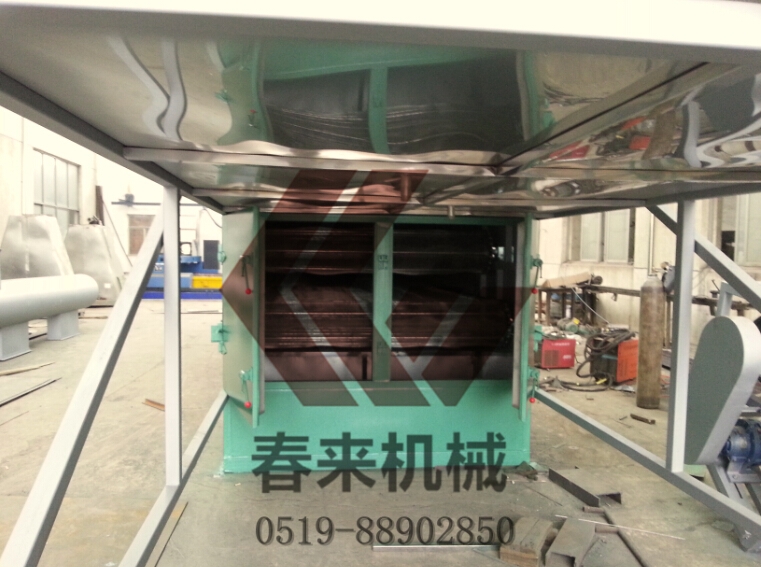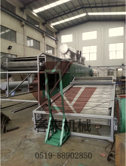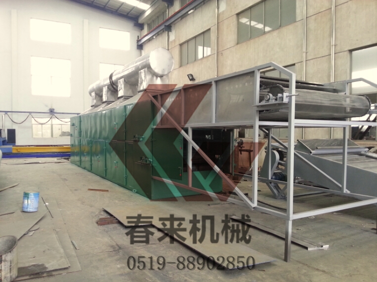 百合專用烘干機(jī)(DW系列帶式干燥機(jī))是一種批量、連續(xù)式生產(chǎn)的干燥設(shè)備。主要加熱方式有電加熱、蒸汽加熱、熱風(fēng)加熱。其主要原理是將物料均勻的平鋪在網(wǎng)帶上,網(wǎng)帶采用12-60目的不銹鋼網(wǎng)帶,由傳動(dòng)裝置拖動(dòng)在干燥機(jī)內(nèi)往返移動(dòng),熱風(fēng)在物料間穿流而過(guò),水蒸氣從排濕孔中排出,從而達(dá)到干燥的目的。箱體長(zhǎng)度由標(biāo)準(zhǔn)段組合而成,為了節(jié)約場(chǎng)地,可將烘干機(jī)設(shè)計(jì)成多層式。